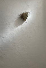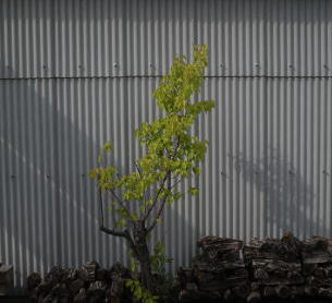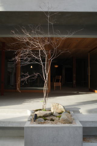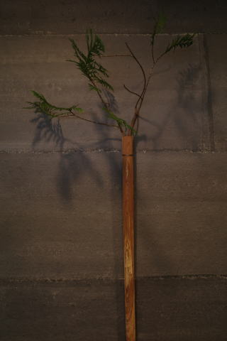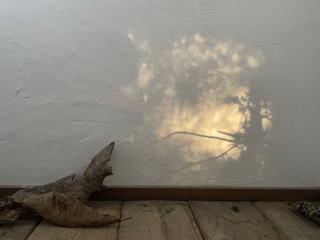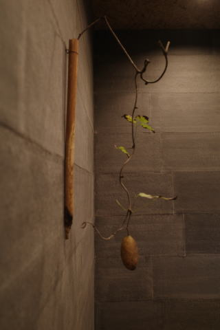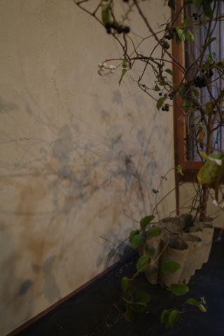 土壁に映る緩やかな木肌、春を待つ黄色。